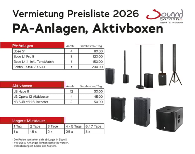 Preise PA-Anlagen, Aktivboxen